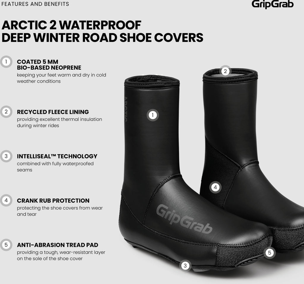 Die Arctic 2 Wasserdichten Deep Winter Rennrad Überschuhe wurden für Radsportler entwickelt, die Spitzenleistung und Schutz bei den schwierigsten Winterbedingungen verlangen.
